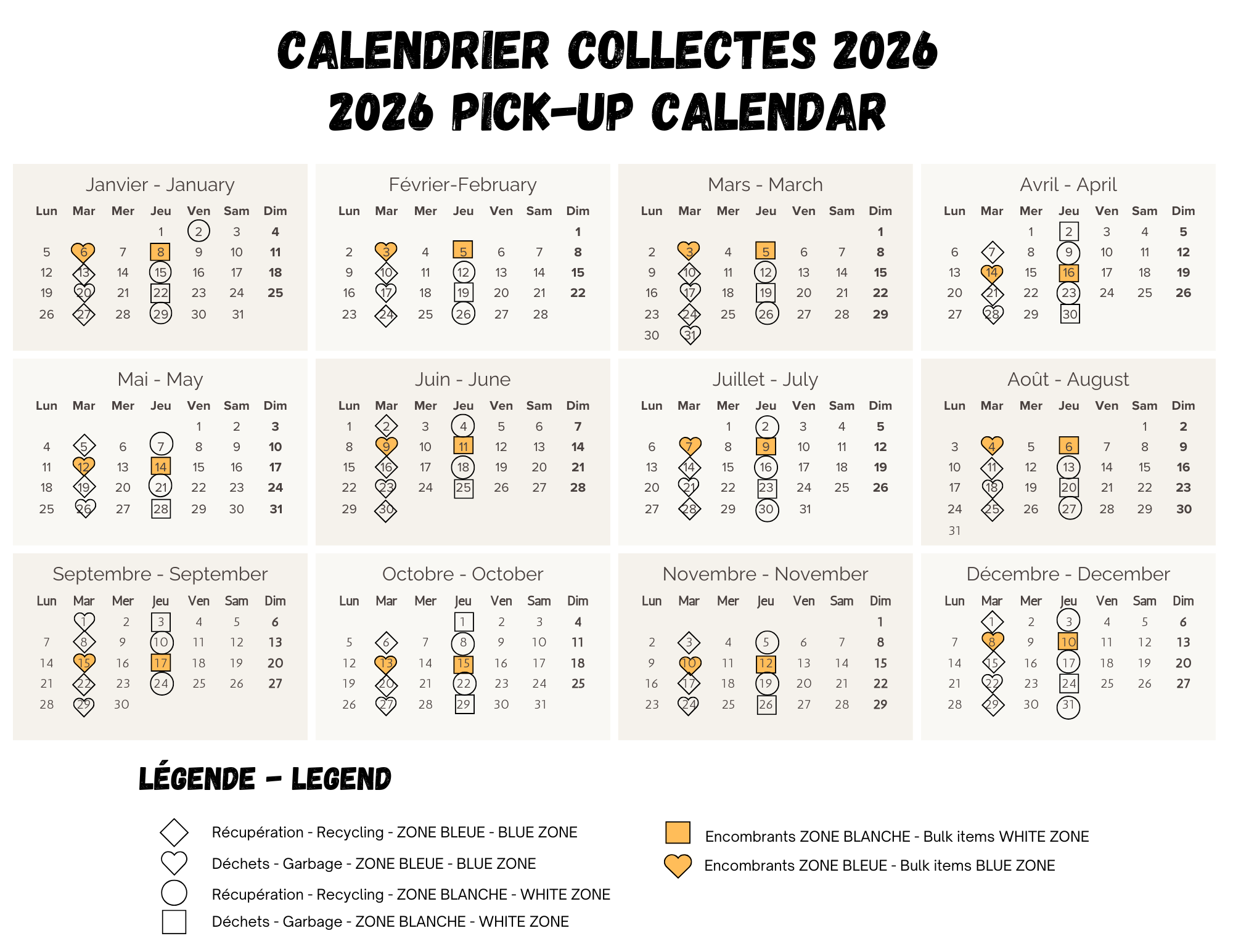 Calendrier 2026 - Déchets et récupération