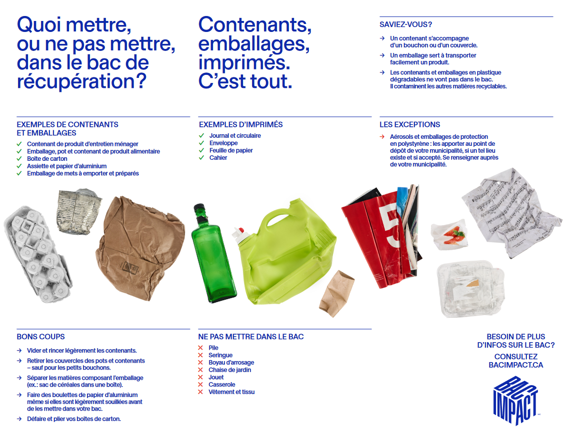 ATTENTION : Aucun sac de plastique, oxobiodégradable ou dégradable n’est accepté.