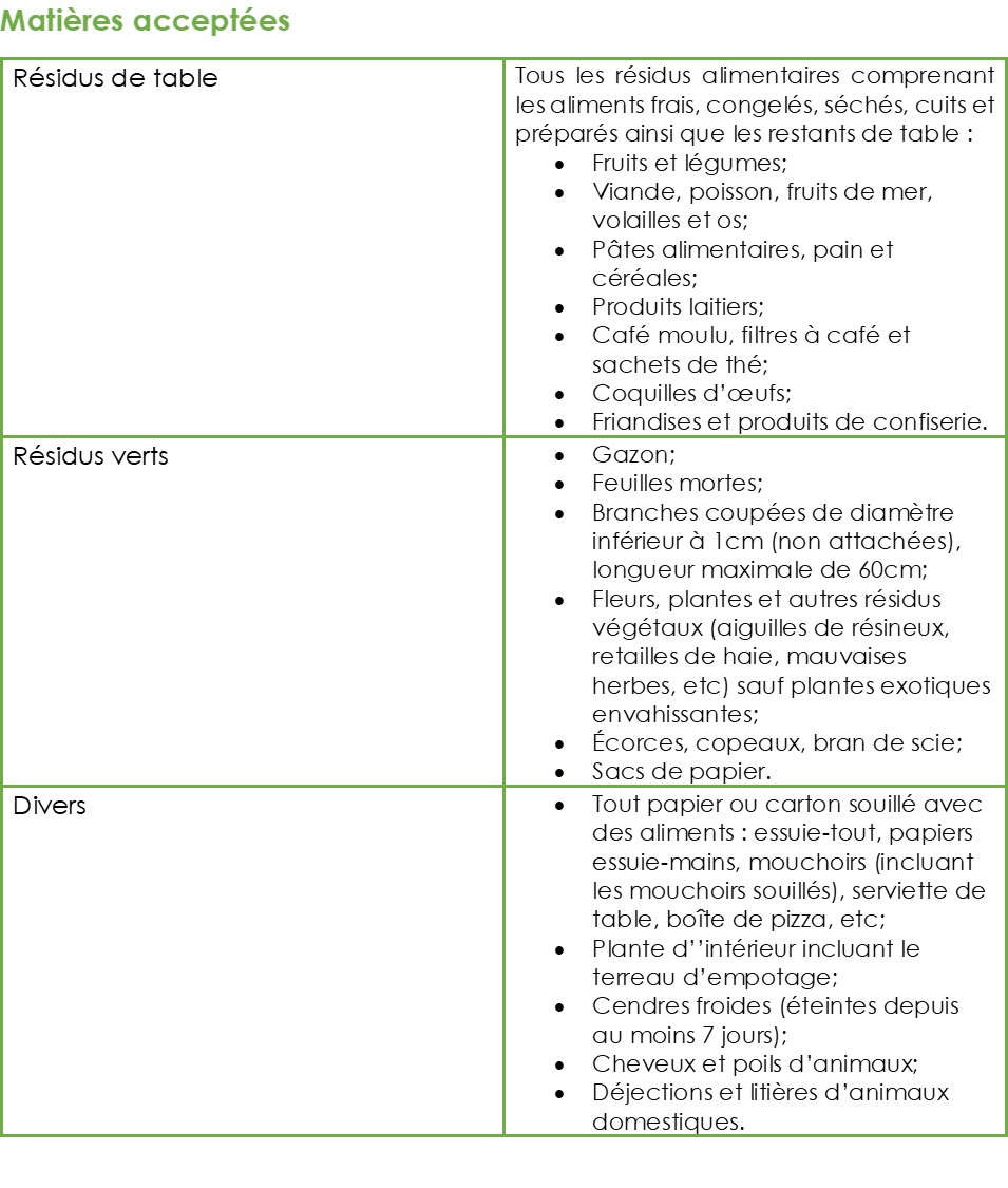 MATIÈRES ACCEPTÉES À L’ÉCOCENTRE