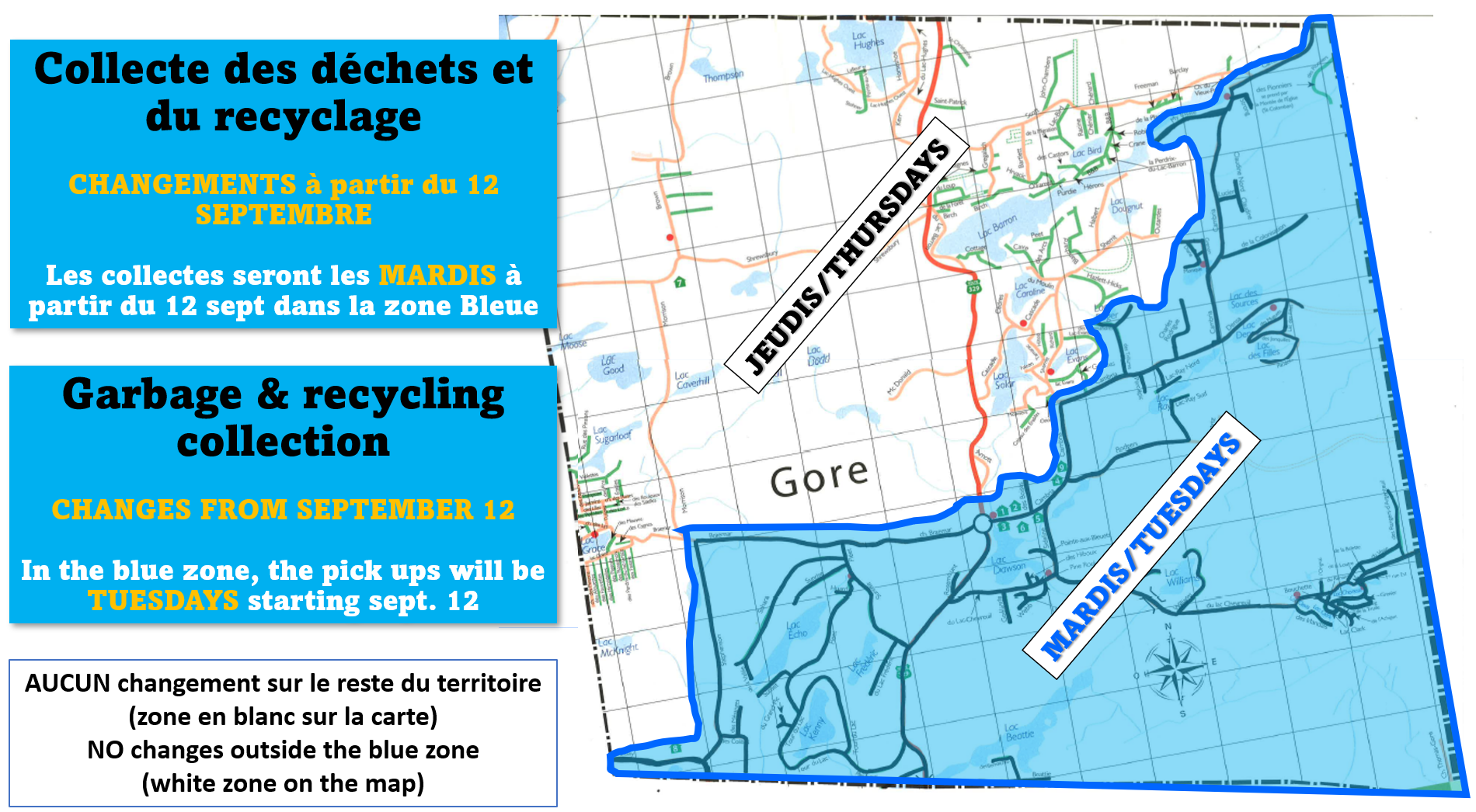 Les points de collecte des matières organiques sont gratuits et ouverts 24h/24h, 7 jours sur 7 et ce, pour tous les résidents de la Municipalité du Canton de Gore.