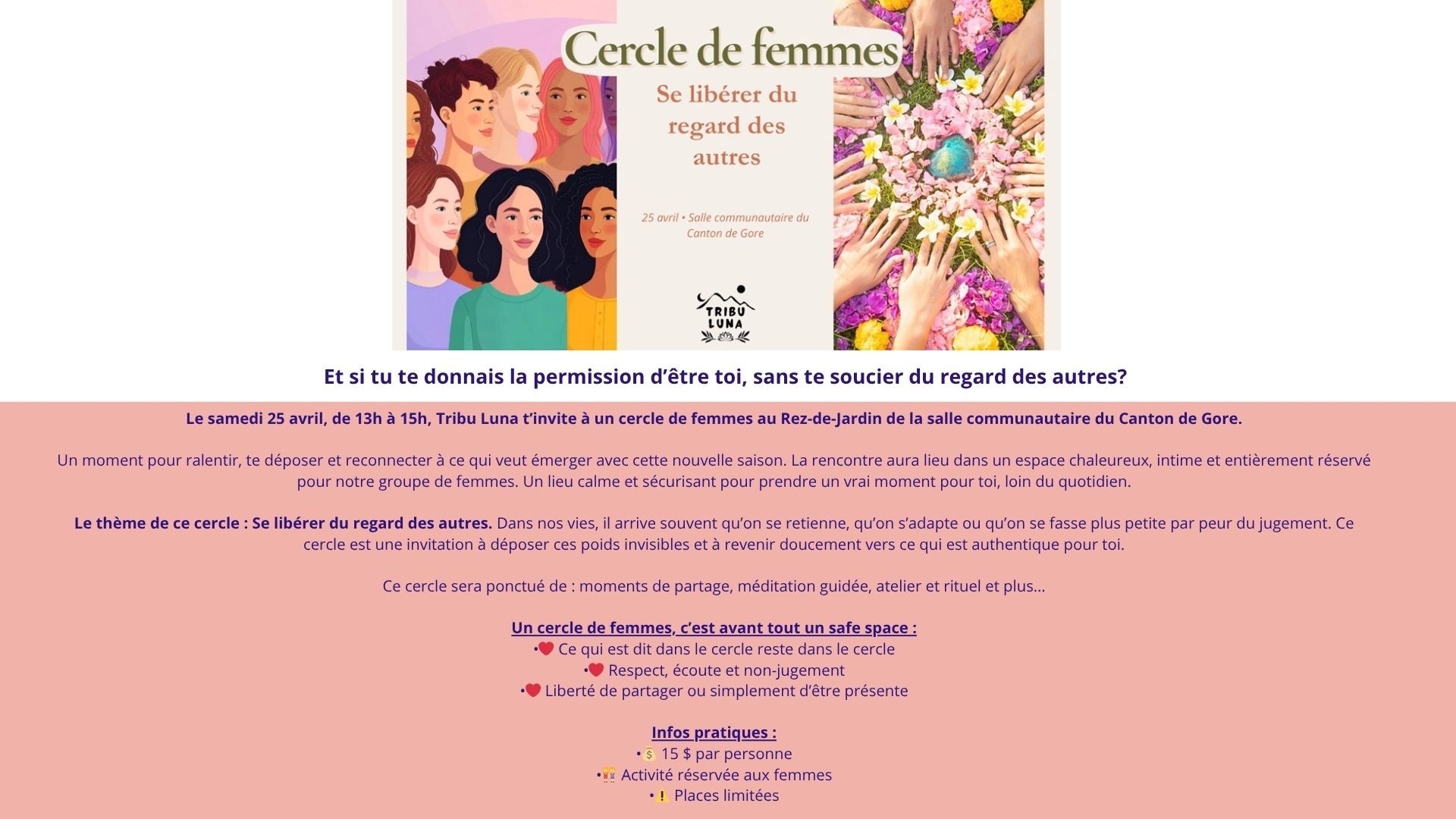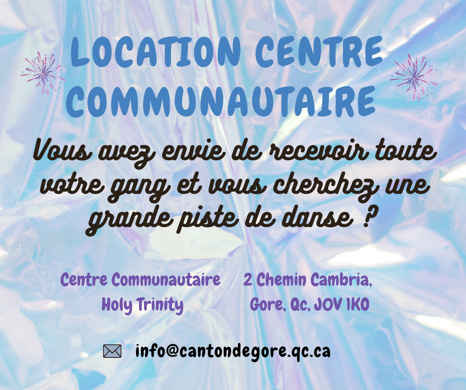 Pour réserver : ccharette@cantondegore.qc.ca ou (450) 562-2025 p. 3530